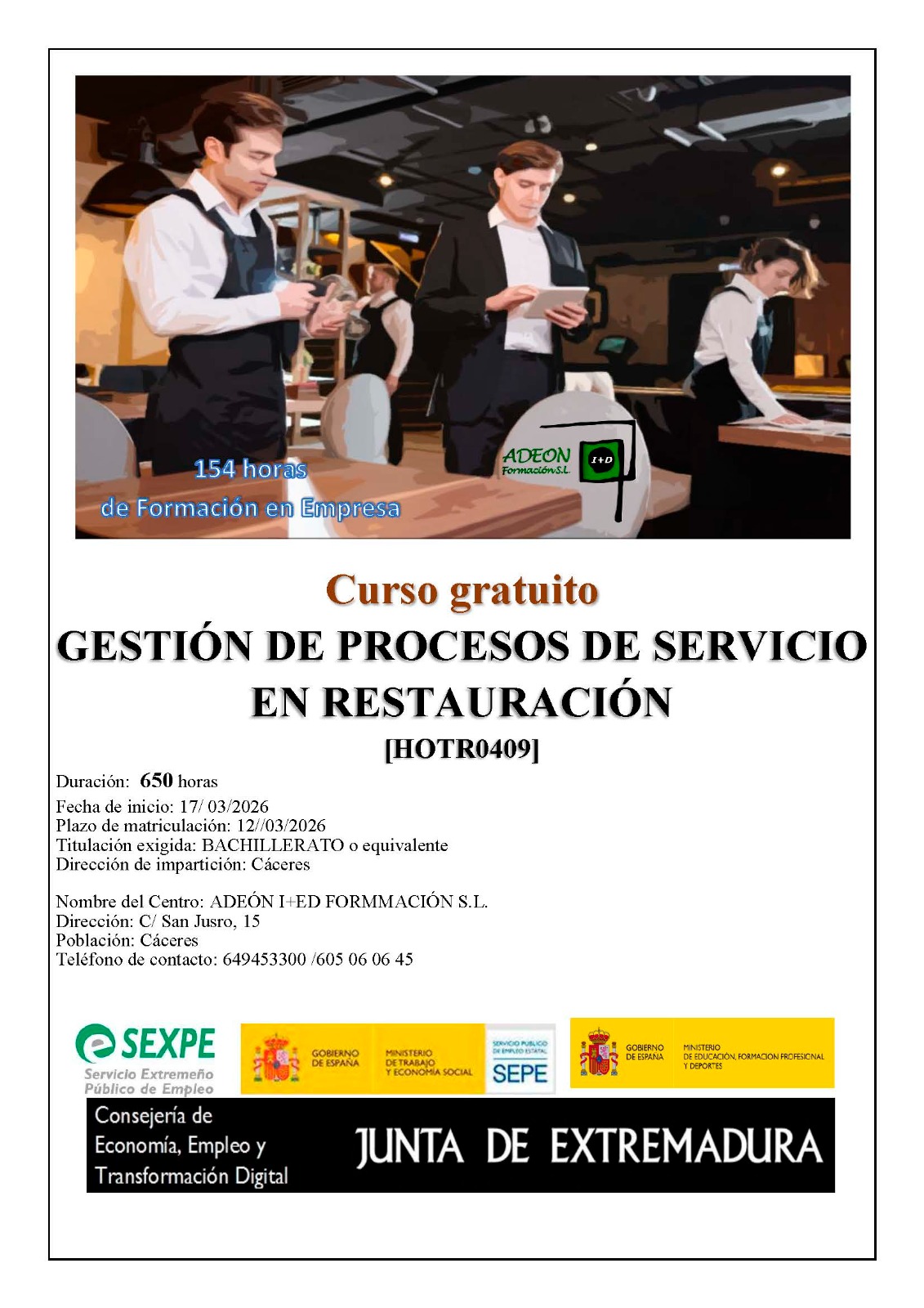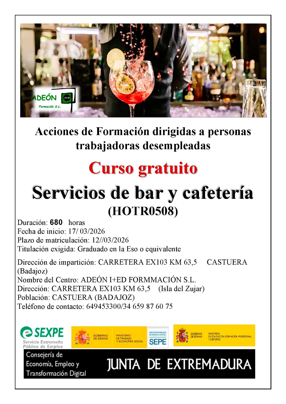 Formación subvencionada y sin coste para el alumno.